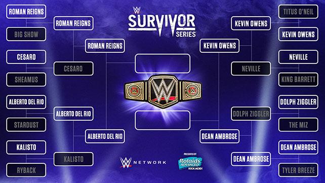 We have two semifinals matches and then the final here. Roman Reigns takes on Alberto Del Rio in the biggest foregone conclusion match of the year, and then we have the wildcard matchup of Dean Ambrose vs Kevin Owens. There are a few ways this thing could unfold: