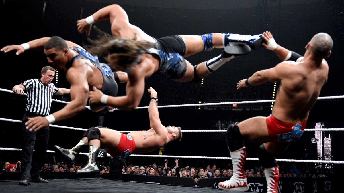- Austin Aries vs Baron Corbin – This was standard veteran putting over the new guy stuff here. Match was OK. Aries won it. Corbin seems to have hit a ceiling in NXT; there’s pretty much zero chance of him getting the title from Finn Balor or whoever Balor eventually loses to. A main roster call up would make the most sense for him now.