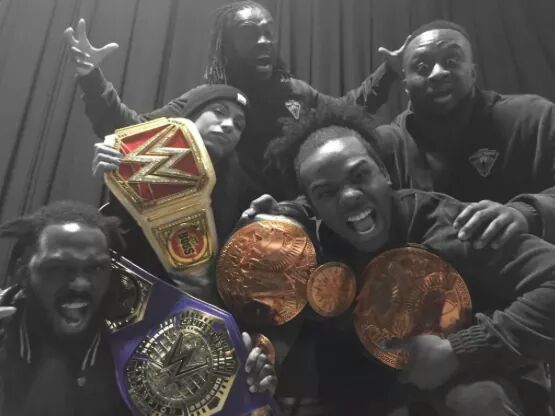 So you have a group of champions taking a picture backstage. Happens fairly often, either as a promotional thing or just coworkers taking a picture together. No problem, right? Well there wasn’t any problem except that Big E added #BlackExcellence as a caption. And then, on cue…….