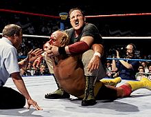 Some big “USA!” chants to start off….mission accomplished, Vince. Apparently this was a no DQ match (I missed where they announced that), because Slaughter broke out a chair and his goons were interfering right in front of the referee. But then later on Heenan on commentary mentioned that Slaughter might be trying to get himself disqualified so who knows? Slaughter needed the help here as he was up in age (42 at the time) and pretty limited in the ring. He spent most of the first half of the match eating Hogan’s offense. He finally got control later on for the usual heel advantage sequence. To his credit when he got control he worked on Hogan’s back to set up his camel clutch finisher. Hogan got good and busted open too, the worst I’ve seen him here. The finish was a sop to the blatant jingoism of the show. I’ll just say it involved a torn Iraqi flag followed what had become the mail it in Hogan match ender. Yeah………. The match wasn’t bad other than the ending that we’ve seen a million times, but we all knew who was winning it when it was announced. Still, Hogan told a good story and Slaughter did enough to hold it together.