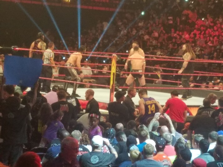 - Big dueling chants of ‘Let go Roman! Roman sucks!’ broke out several times during the show including during the preshow, totally unprompted. Whatever you think about him, people react to him and it’s not Go Away heat, either. Go Away heat doesn’t break out during the preshow with no trigger. Also, I noticed that the dueling chants are very often being said by the same person. Take that for what it’s worth.