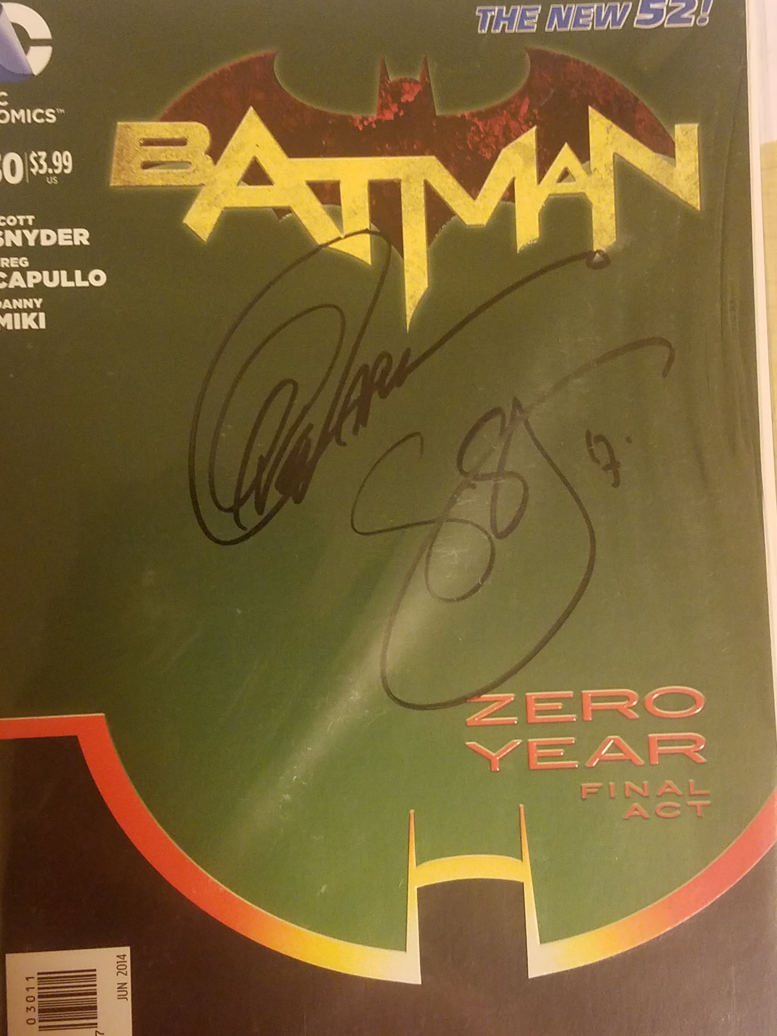 I also got a Batman book signed by Scott Snyder and Greg Capullo: