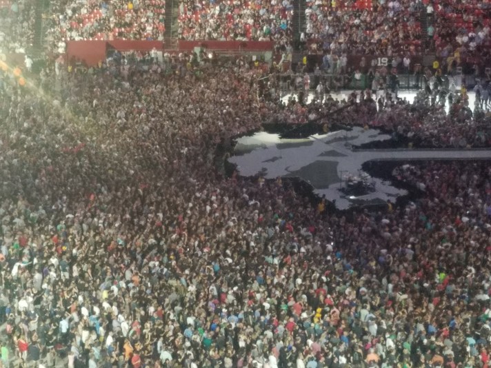 The stage wasn’t as grandiose as the 360 Tour or even the Innocence and Experience Tour they did a little over a year ago, but you still had a big screen and the big lights that are customary at a U2 show. Lead singer Bono doesn’t run and jump around like he did 30 years ago, but a) who does? and b) I think they show a confidence in the songs that they didn’t have before which requires fewer theatrics in performing them. Bono’s voice is still one of the great ones in rock music, and lead guitarist The Edge is still one of the best as well.
