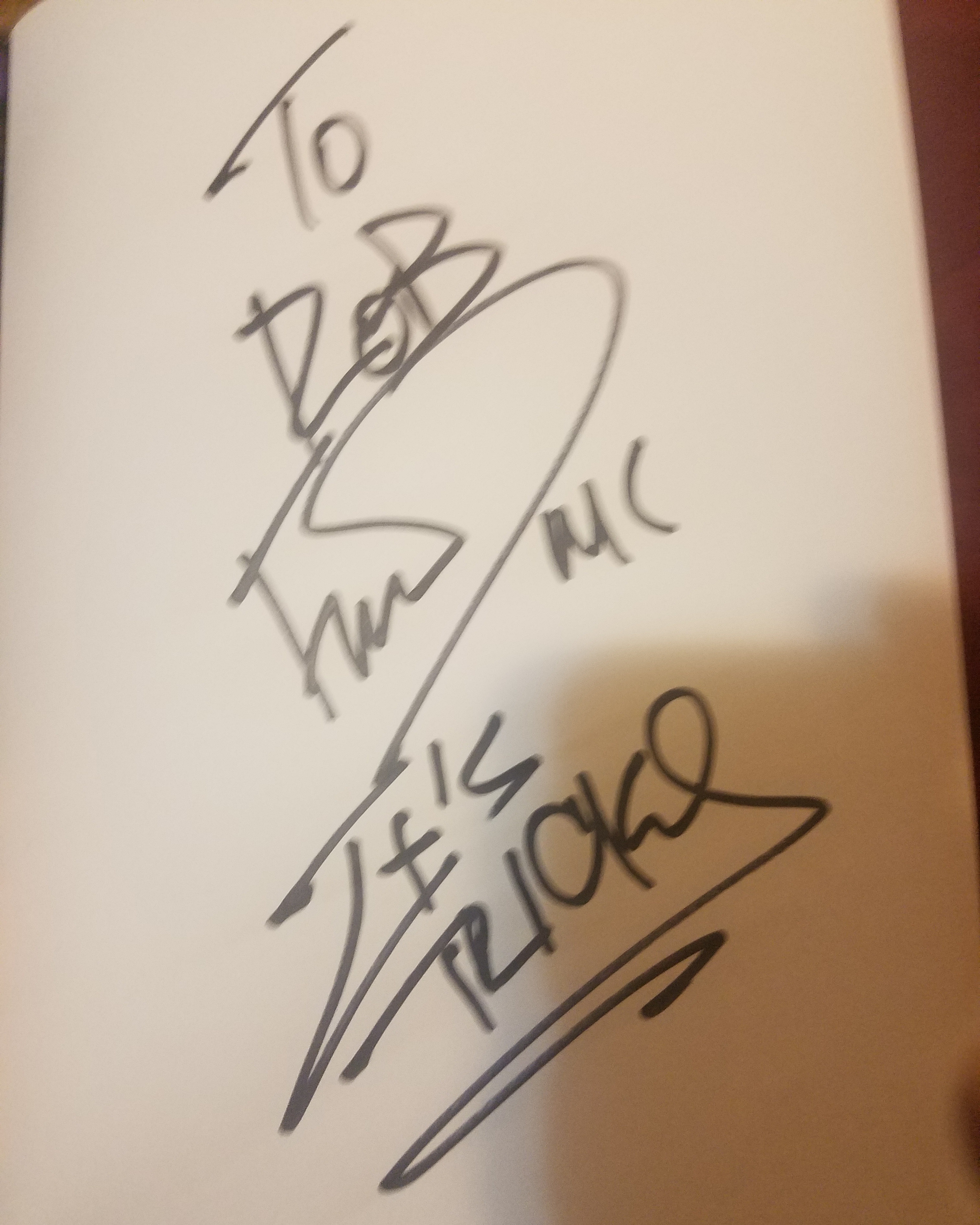 The highlight for me was meeting and getting a picture with Daryl McDaniels aka DMC from Run-DMC. He was really cool and was just at a table like the other writers/artists, not tucked away in a VIP room somewhere. As a Run-DMC fan from way back that was truly a fanboy moment if there is one. I had to scramble to come up with a pose but here it is, along with the autograph I got from him: