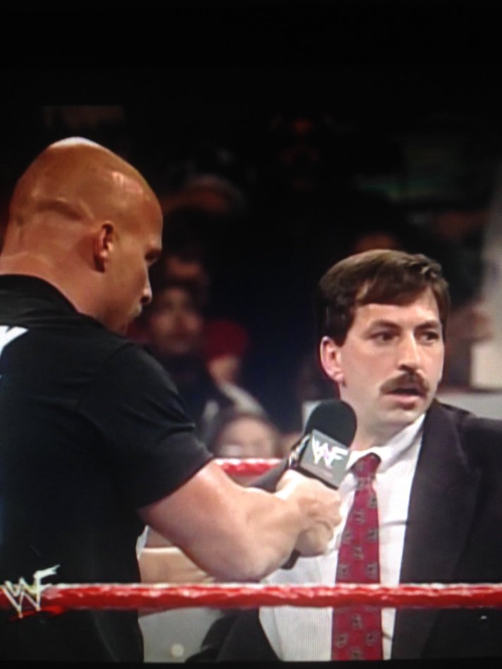 We now get an in ring segment where Austin comes to the ring, gets on the mic, and threatens to beat the crap out of the timekeeper if he screws him as per Vince McMahon’s wishes.