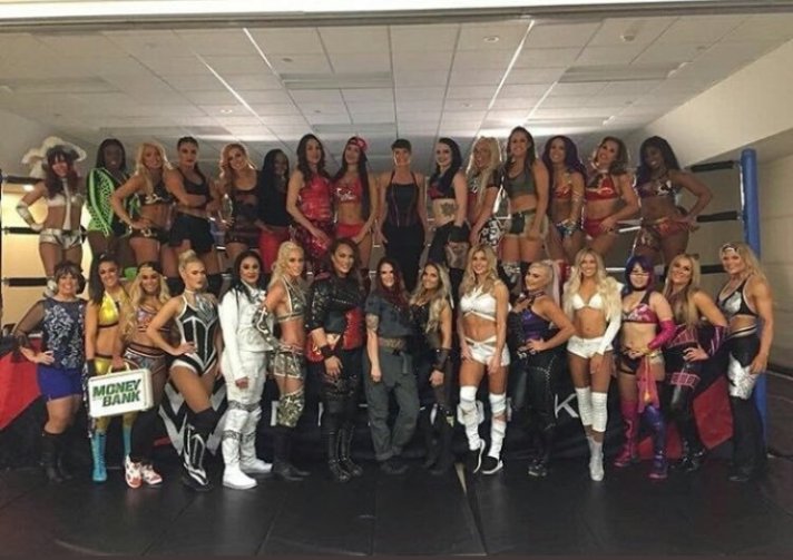 The match and all the hoopla around it was both an achievement and an apology of sorts. The many backstage photos of the current women wrestlers with their predecessors were great displays of respect and admiration, like this one: