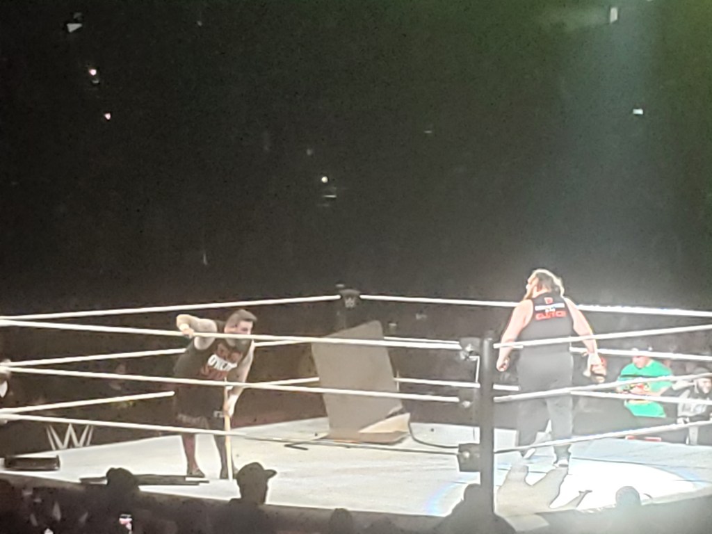 Lana comes out with Bobby first and insults us in the audience to get some heat, followed by Ricochet and our new US champion. Lana is good at being annoying, and we responded in kind. Andrade is so smooth in the ring, he makes it look easy. Good match all around, with some timely interference from both Lana and Zelina Vega on behalf of their men. Good match here, everyone got some stuff in, and they worked together well. I was expecting a Rusev run in and that didn’t happen but the match was good and entertaining on its own.