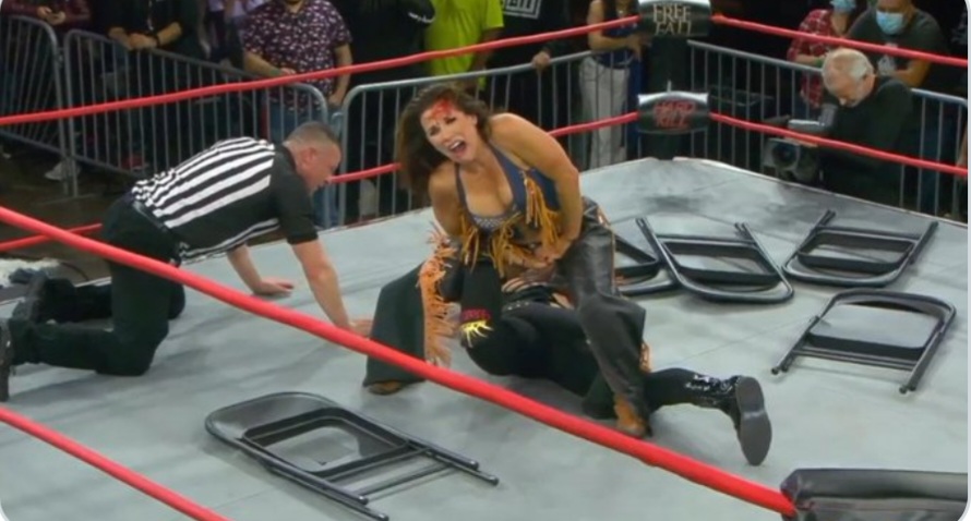 This match was made much more interesting by James being announced for the 2022 Royal Rumble. This was a Texas Death Match, which meant to win you to knock your opponent out for a 10 count. For some reason both women covered each other for pins and went for tapouts even though they didn’t count here, then it was explained the pin and submissions were the prelude to the 10 count. Both women went for the chairs early on, and continuing with what went down earlier in the night ROH women’s champion Rok C was shown in the crowd. A golf club was used as a weapon, as was a wheelbarrow (why was that even there?). The fight went up the aisle to the entrance by the jumbotron. James got busted open (don’t know if it was hardway or not). Some thumbtacks were introduced (why are we still doing thumbtack spots in 2022?). Purazzo got busted open later. This was a brutal brawl, in all the good and bad ways. Purazzo’s manager Matt Rehwoldt was banned from putting his hands on James but did interfere but helping Purazzo beat the count and taking a guitar shot for her. James eventually got the win to retain the title in what was a no brainer of a booking decision, but Impact is known for stepping on rakes when it comes to easy decisions so it was not a forgone conclusion at all. Good match for what it was; I’m not big on thumbtack spots but if you’recool with them there’s nothing to really hate on with this match.